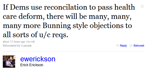 For weeks now, Republicans have been grousing that, if Democrats use the budget reconciliation process to finish health care reform with a simple majority, it “would be unprecedented in scope.” “It would really be the end of the Senate as a protector of minority rights,” declared Sen. Lamar Alexander (R-TN). It would “harm the future of our country,” said Sen. John McCain (R-AZ). “They will lose their majority in Congress in November” if they use reconciliation, Rep. Eric Cantor (R-VA) predicted.