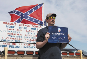 More and more, this feels to me like an essentially cultural revolt against what America is becoming: a multi-racial, multi-faith, gay-inclusive, women-friendly, majority-minority country. The "tea-party" analogy is not about restricting government as much as it is a form of almost pathological nostalgia. That's why there's much more lashing out than constructive proposals. And yes, a bi-racial president completes the picture. And no, that doesn't mean they're all racists. Discomfort with social and cultural change is not racism. But it can express itself that way.